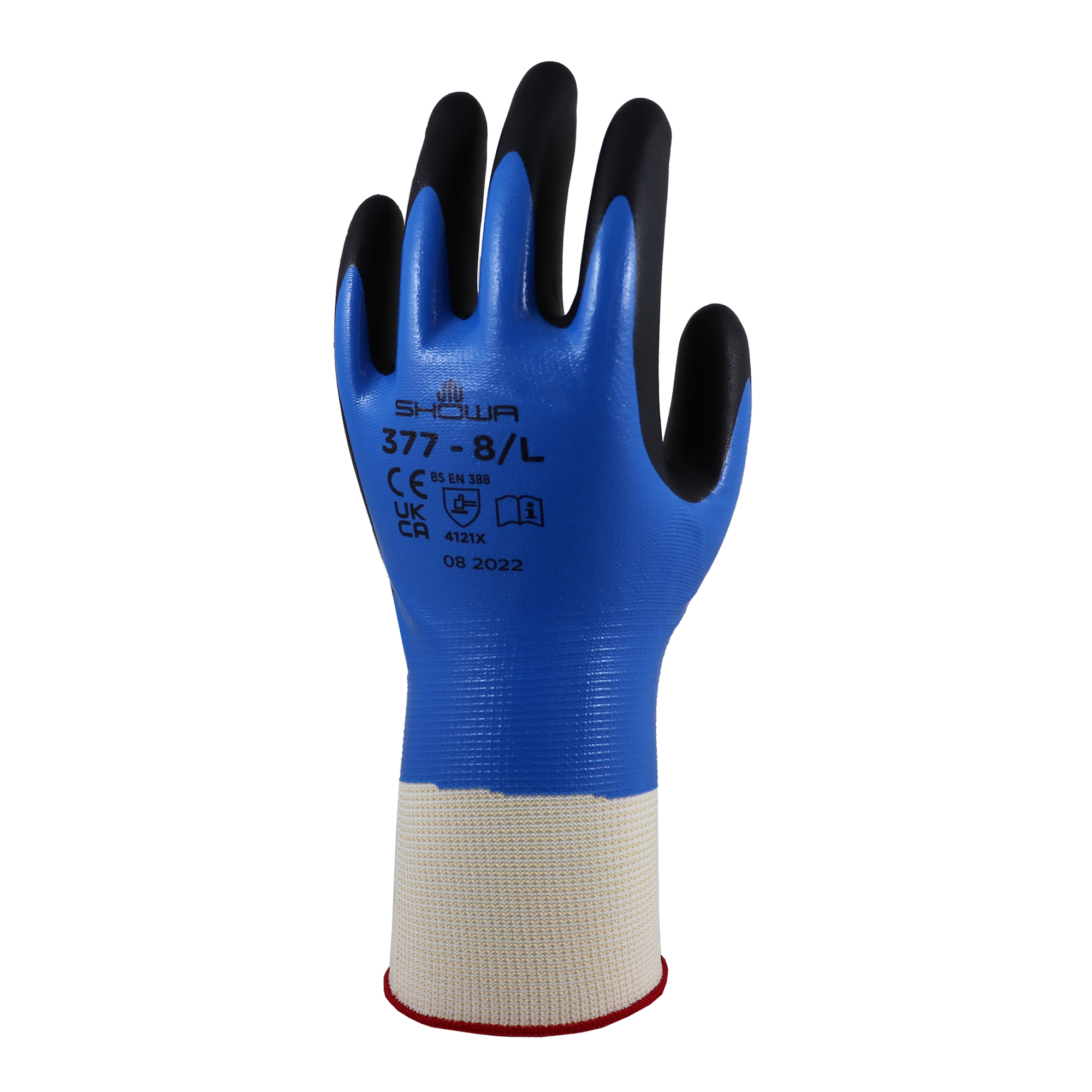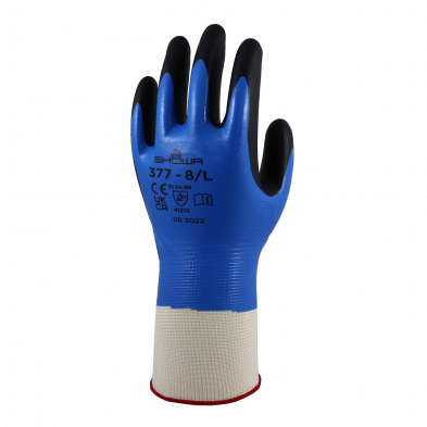 • Thin dipped blue nitrile coating to resist liquid