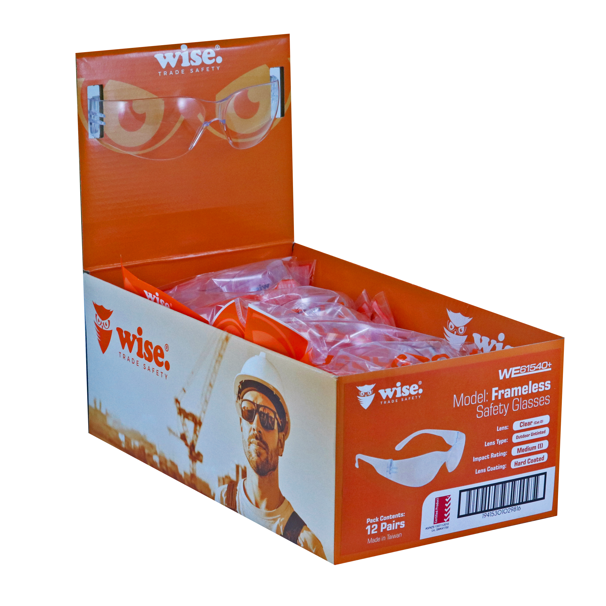 Wise Frameless Safety Glasses Clear, the perfect eyewear for both indoor and outdoor use. With lightweight frames and medium impact protection, these glasses offer comfort and safety. Additionally, they areUV resistant, ensuring long-lasting durability.
