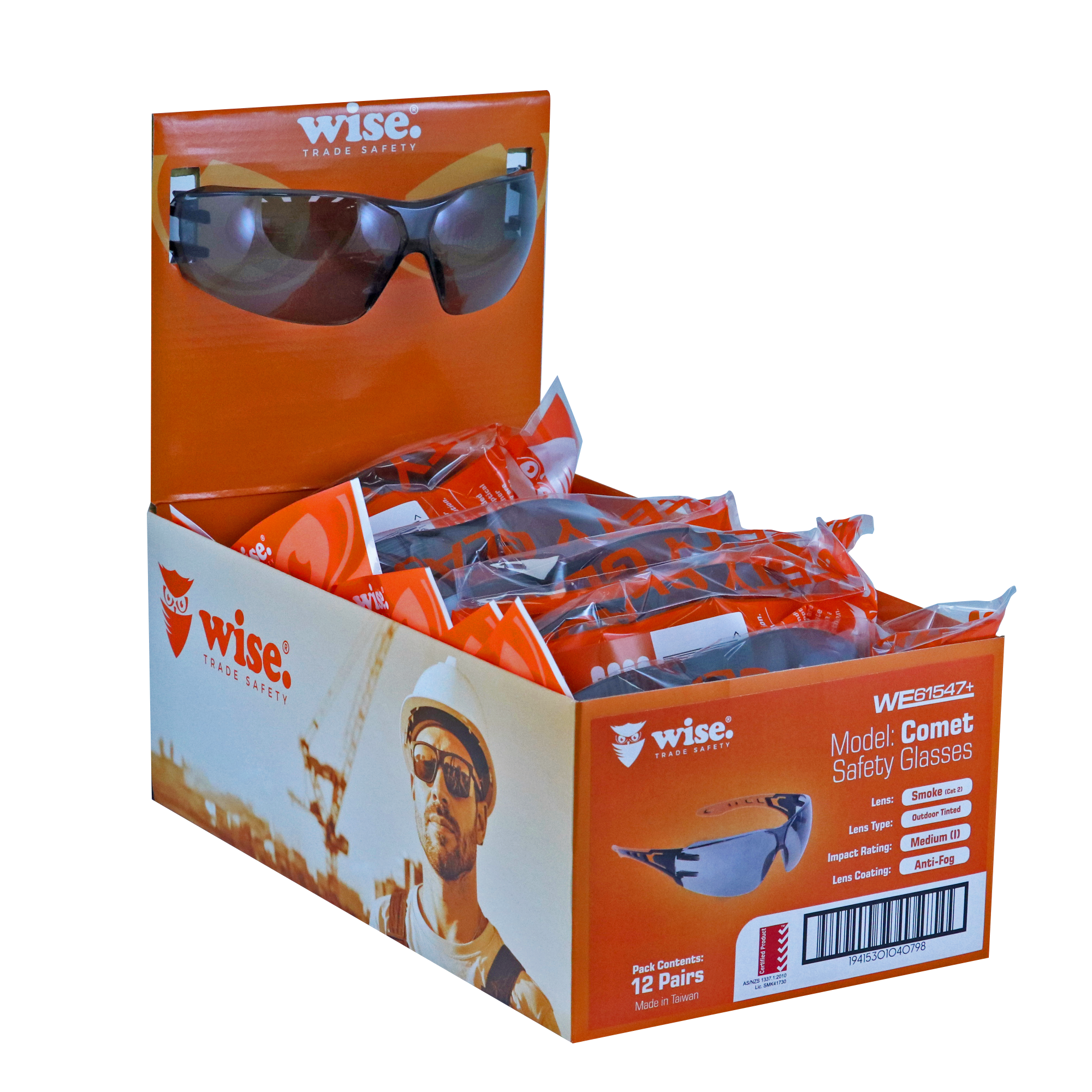 The Wise Comet Smoke Safety Glasses are built for clarity and comfort in outdoor settings. Featuring a smoke-tinted Cat 2 lens with anti-fog protection, they reduce glare while keeping your vision sharp. With padded side arms and a lightweight design, they’re ideal for all-day wear and dependable eye protection.