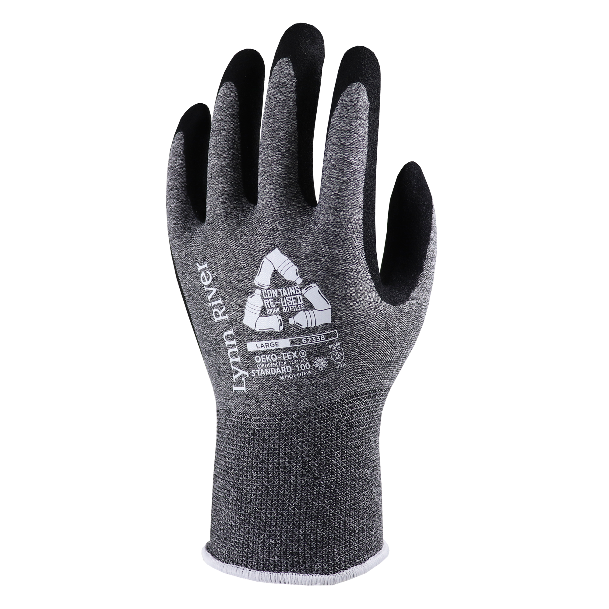 Each pair contains 10g - 15g of recycled PET material. This equates to roughly one 500ml drink bottle per pair. All recycled material is audited through entire chain of custody via the Global Recycled and Recycled Claim Standards administered by Textile Exchange. These gloves achieve Standard 100 by OEKO-TEX.